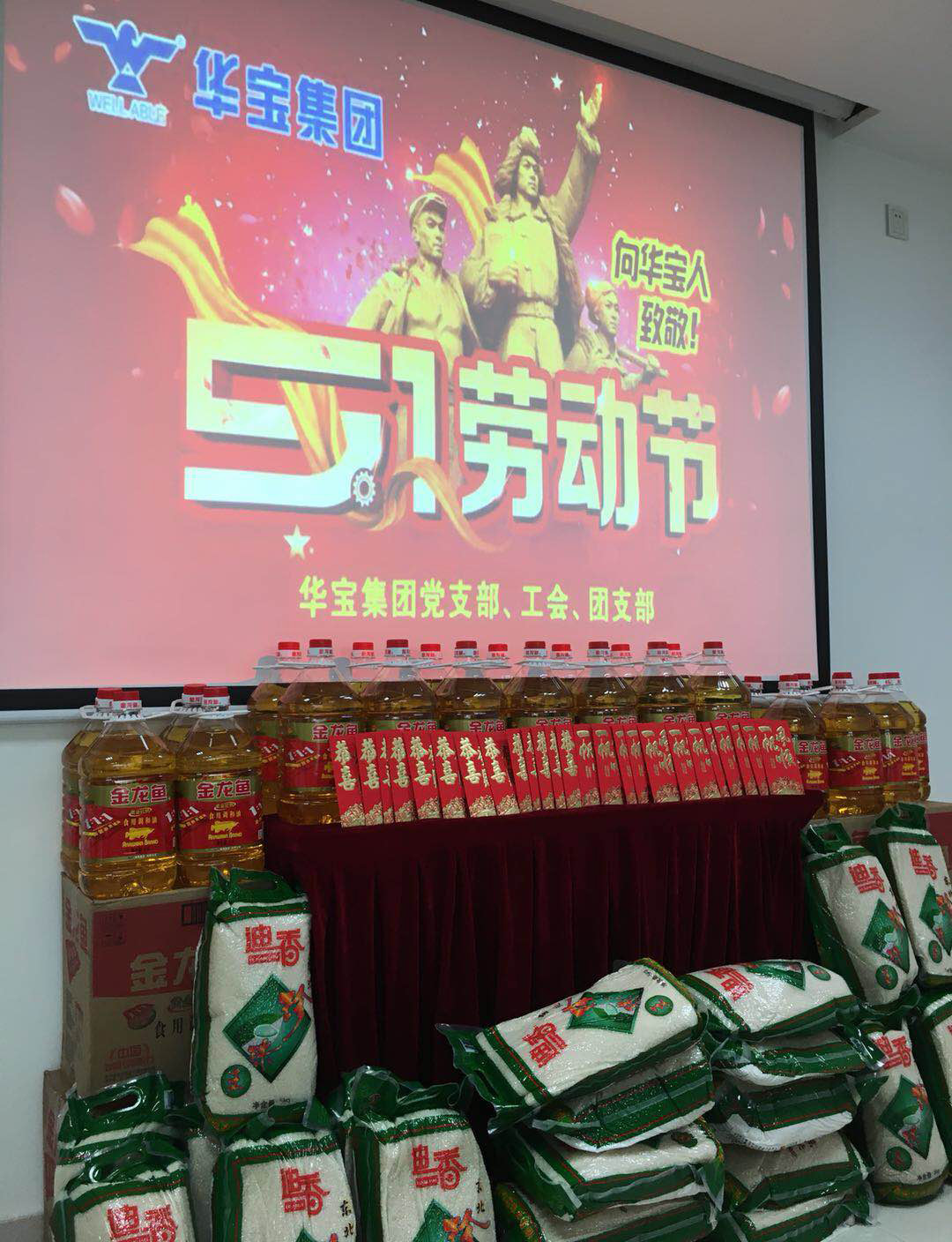 2018年4月28日,“五一”勞動節(jié)前夕,在華寶集團黨工團的指導下,華寶集團舉行了慶“五一”困難職工慰問大會,對各廠參會的職工發(fā)放慰問金和慰問品。集團工會主席師體偉和副主席陳云偉分別發(fā)表講話,對困難職工表示親切的關懷和慰問,職工代表發(fā)言表達對公司的感謝。