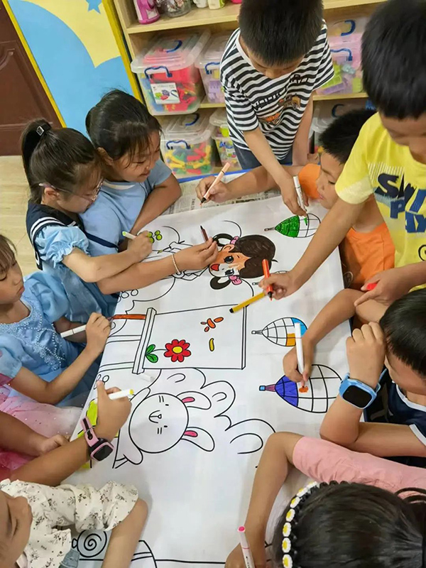 全體小朋友先對喜愛的美術作品進行投票,再一起進行涂鴉活動,在涂涂畫畫中激發(fā)了孩子們感受美、表現(xiàn)美、創(chuàng)造美的情感。