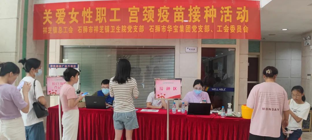 為更好地履行華寶集團(tuán)黨支部和祥芝鎮(zhèn)衛(wèi)生院黨建共建協(xié)議,落實(shí)祥芝鎮(zhèn)衛(wèi)生院家庭醫(yī)生簽約協(xié)議,6月23日祥芝鎮(zhèn)衛(wèi)生院為華寶集團(tuán)80余位婦女職工提供2價(jià)宮頸癌疫苗上門注射服務(wù),為華寶集團(tuán)女職工的健康保駕護(hù)航,也更好地發(fā)揮華寶集團(tuán)黨支部和工會(huì)關(guān)愛婦女職工作用。 在我國(guó),宮頸癌是第二大女性惡性腫瘤,每年新發(fā)病例11萬左右。可謂不折不扣的"紅顏殺手"。不過幸運(yùn)的是,宮頸癌是目前唯一病因明確、可防可控的癌癥。因此做好疾病科普,讓大家做好預(yù)防措施,能夠有效預(yù)防宮頸癌。